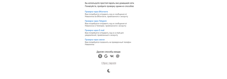 - Если пароль не стойкий, Вы также можете авторизоваться, однако необходимо пройти дополнительную идентификацию одним из предложенных способов: